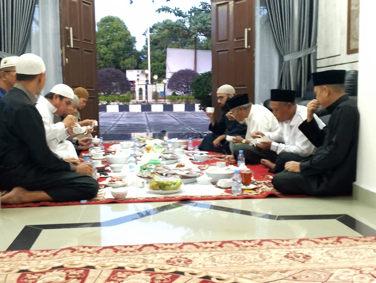 Hambali didampingi sang isteri berserta Ajudan dan Walpri tampak datang menyambut kedatangan sang imam dan rombongan di rumah dinas untuk agenda buka bersama.