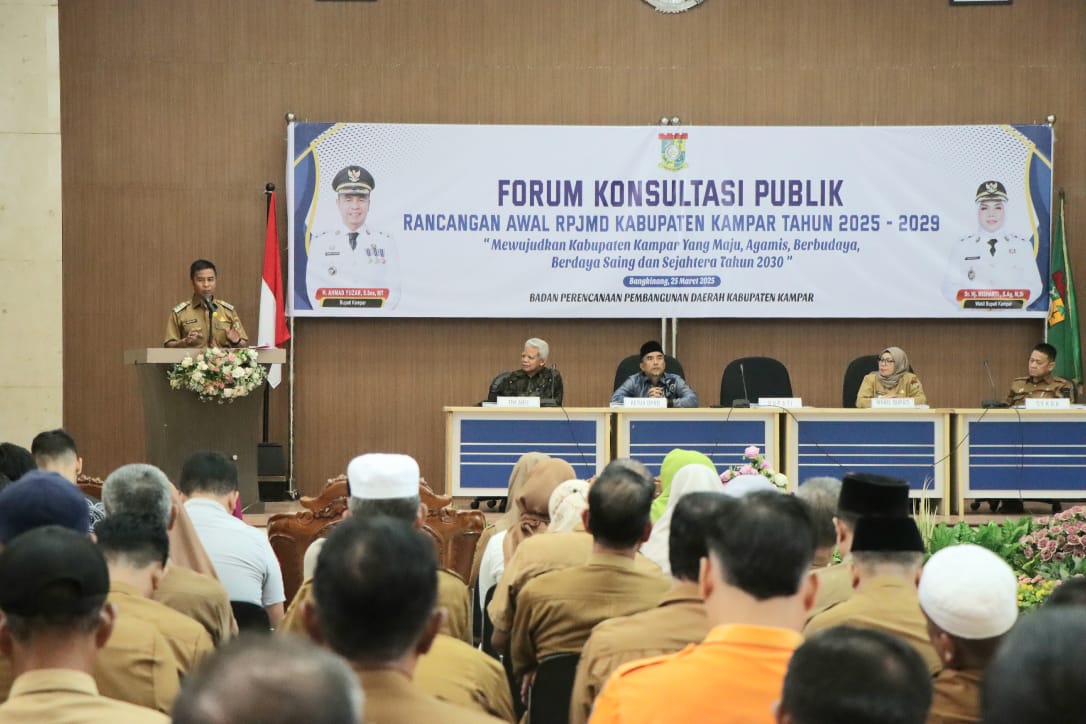 Pembahasan ini diawali dengan pembukaan Forum Konsultasi Publik (FKP) Rancangan Awal RPJMD Kabupaten Kampar tahun 2025-2029, Selasa (26/03/2025) pagi hingga selesai.