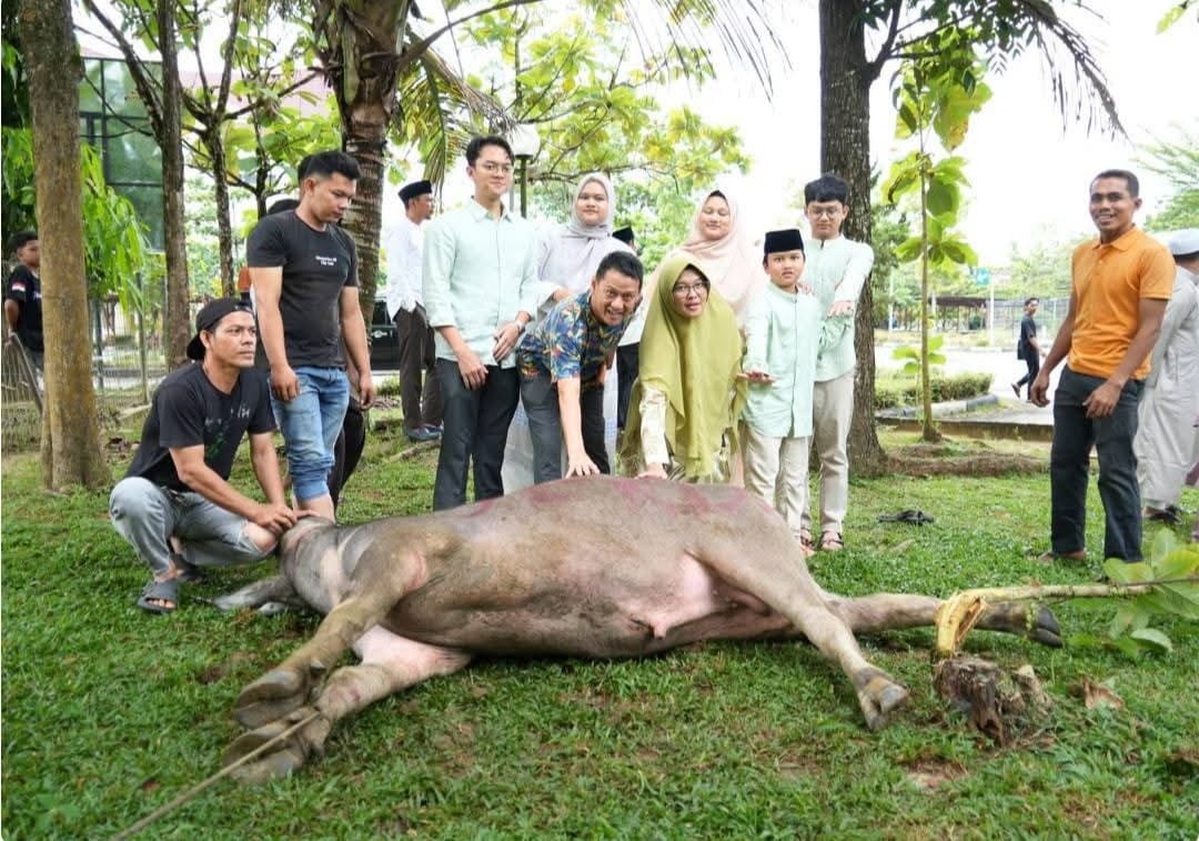 “Penyembelihan hewan kurban yang kita laksanakan hari ini di Masjid Muhajirin, komplek kantor Bupati Kampa merupakan simbol kepedulian dan tanggung jawab sosial kita sebagai aparatur pemerintah terhadap masyarakat,” jelasnya.