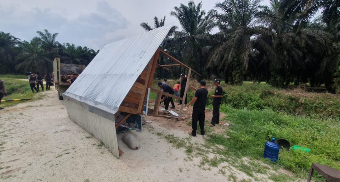 Jejak18news.com – Beberapa orang yang mengaku Dubalang Desa Pangkalan Baru, Kecamatan Siak Hulu, Kabupaten Kampar, di dampingi Kepala Desa Pangkalan Baru, Yusri Erwin, melakukan aksi pembongkaran portal masuk dan pos pengamanan milik Koperasi Produsen Petani Sawit Makmur, (Koppsa-M) Kamis, (03/07).