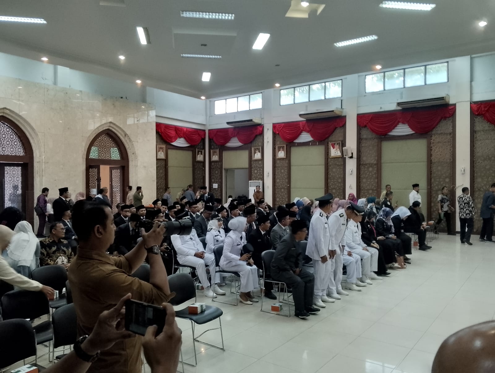 Pelantikan dan pengambilan sumpah jabatan pejabat yang akan dipimpin langsung oleh Bupati Kampar H Ahmad Yuzar, di Aula Pertemuan, Kantor Bupati Kampar, Jalan Panglima Khotib, Kelurahan Langgini, Kecamatan Bangkinang Kota, Kabupaten Kampar, Jum’at (12/09/2025) pagi ini.