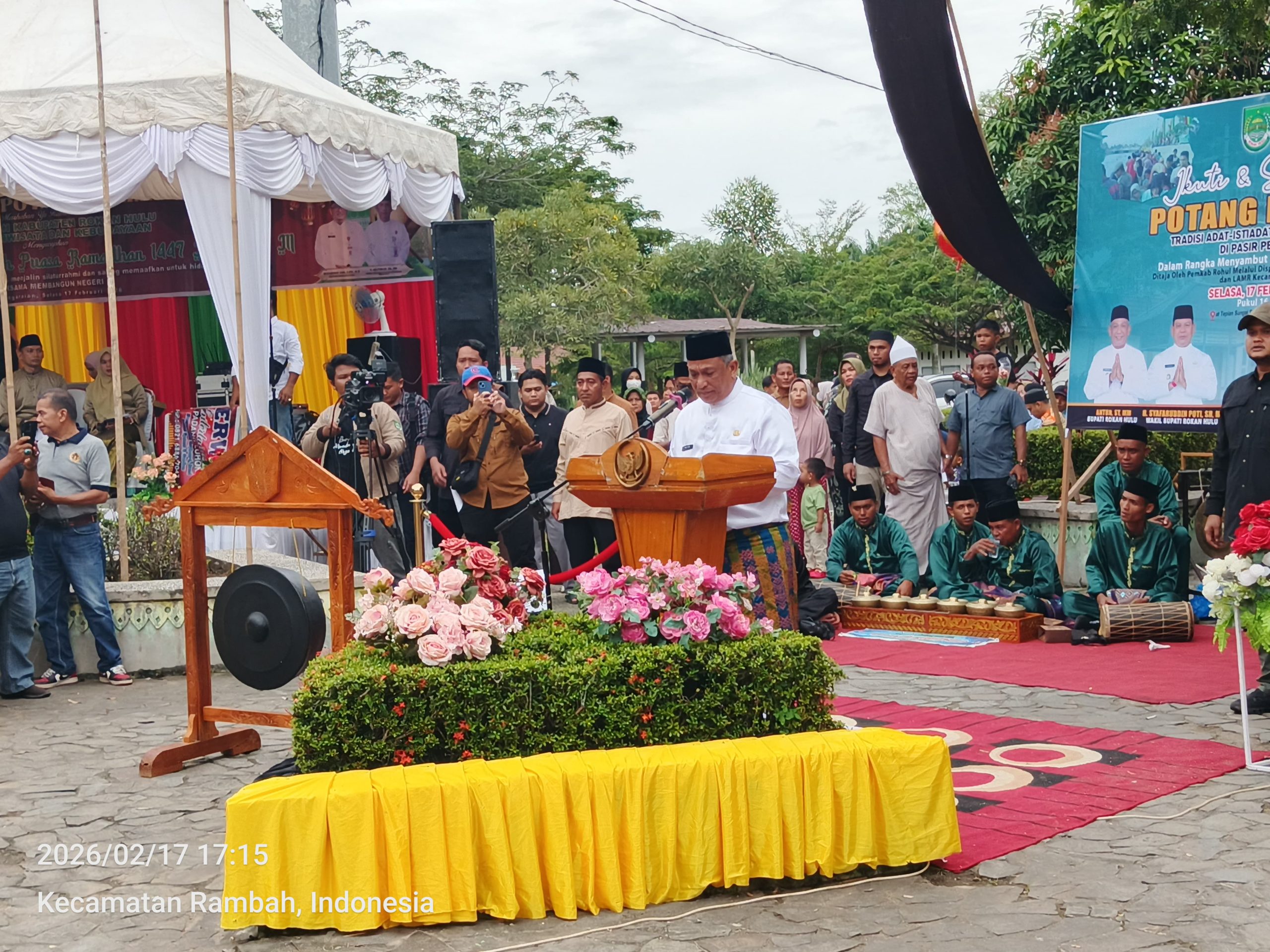 Jejak18news.com – Pemerintah Kabupaten Rokan Hulu (Rohul) bersama Lembaga Adat Melayu (LAMR) Rohul melaksanakan tradisi adat Potang Bolimau dalam rangka menyambut datangnya bulan suci Ramadhan 1447 Hijriah. Tradisi yang sarat nilai religius dan budaya ini berlangsung khidmat dan meriah, Pujasera Batang Lubuh Pasir Pengaraian, Selasa (17/02/2026).