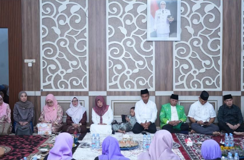 Jejak18news.com – Bupati Kampar Ahmad Yuzar.S.Sos.MT, bersama Wakil Bupati Kampar Dr Misharti S.Ag M.Si menghadiri kegiatan Khatam Al-Qur’an dan Buka Puasa Bersama keluarga besar PGRI, BNK, KPAI, Pusdatin Puandri serta Majelis Zikir Kampar Dihati Kabupaten Kampar, dengan mengusung tema “Menjalin Silaturahmi Meraih Ridho Ilahi di Rumah Dinas Wakil Bupati Kampar Bangkinang Kota.” Sabtu (7/3).